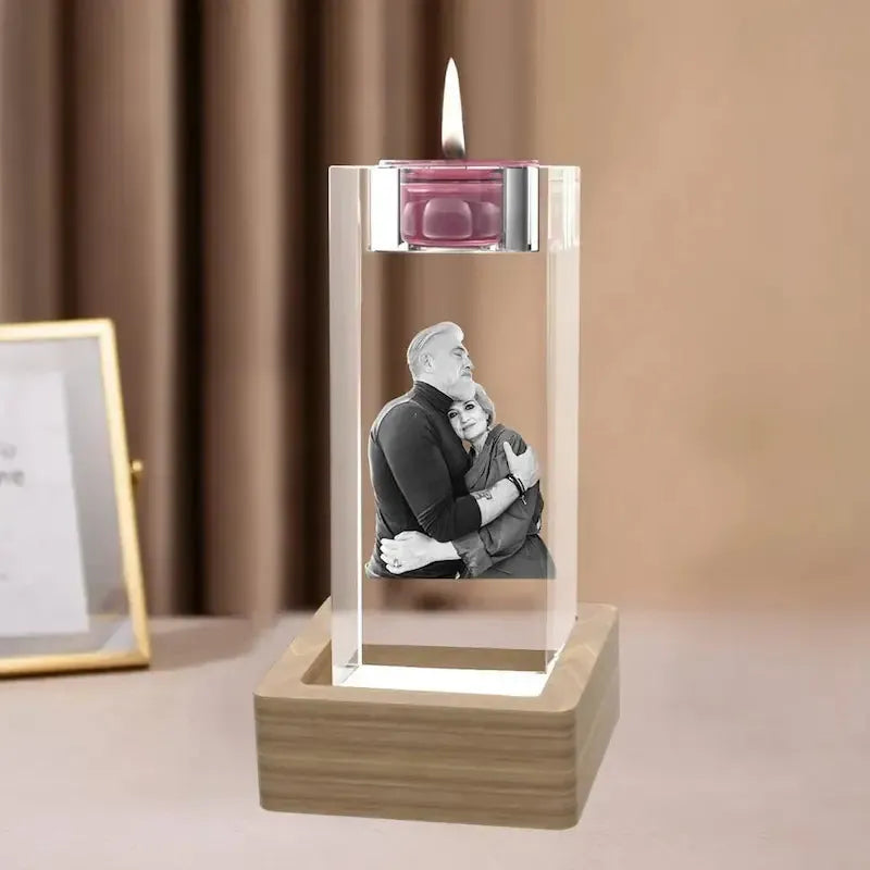Light up Mom's heart with a personalized crystal candle holder featuring your favorite photo in stunning 3D. Watch her smile as candlelight brings your memory to life with a warm, magical glow.