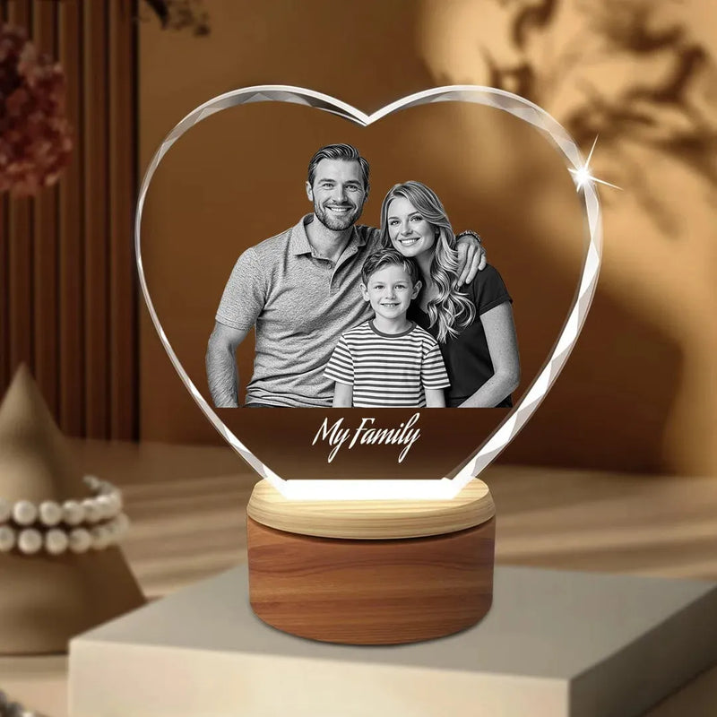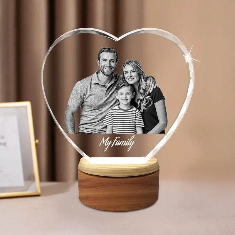 Your photo is transformed into a vivid 3D image that appears to float within the crystal, bringing your memories to life.