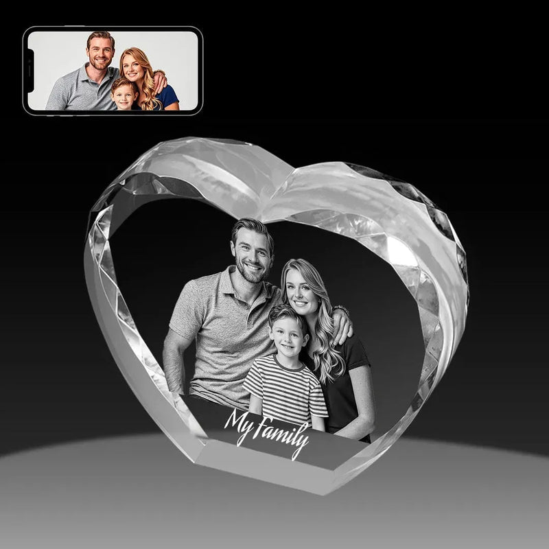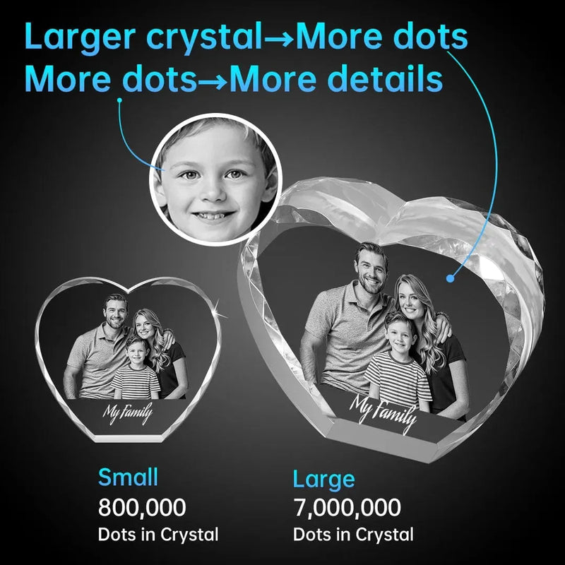 If you’d prefer a photo that appears suspended inside the crystal with true depth, explore our 3D Crystal Heart Photo Gift with Diamond Cut — featuring realistic 3D laser engraving that brings your image to life in stunning detail.