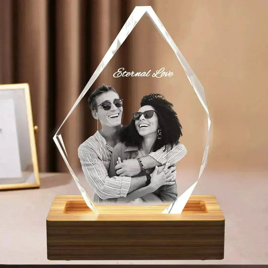 เปลี่ยนภาพถ่ายโปรดของคุณให้กลายเป็นภาพที่น่าทึ่ง 3D งานศิลปะด้วยการแกะสลักคริสตัลแบบกำหนดเองนี้! การออกแบบเหลี่ยมเพชรช่วยเพิ่มความลึกและความแวววาว, ทำให้ความทรงจำของคุณเปล่งประกาย.